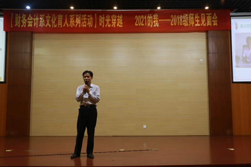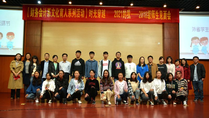 10月16日下午,财务会计系在学院会议中心以“时光穿越:2021的我”为主题,召开2018级师生见面会。学院学生处、招生就业处负责人,系领导、专业带头人、教研室主任、辅导员老师、班主任老师们,来自温岭、临平“3+2”人才培养合作学校的老师代表,以及2018级全体新生参加。
