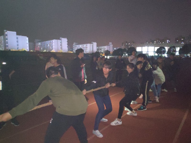 第三个拔河项目,双方为每班由七女三男组成的十人队伍对阵。比赛进行到此天色已经渐暗,但同学们依旧卯足了劲,热情高涨。友谊第一,比赛第二!经过三轮紧张激烈的比赛,最终会计188班获得本次比赛的冠军。