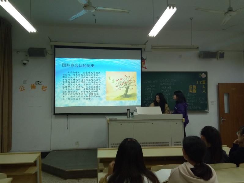 11月15日晚,财务会计系大一开展国际宽容日系列主题活动,活动由宽容值测试和宽容故事小讲堂两部分组成,全系大一同学参加。