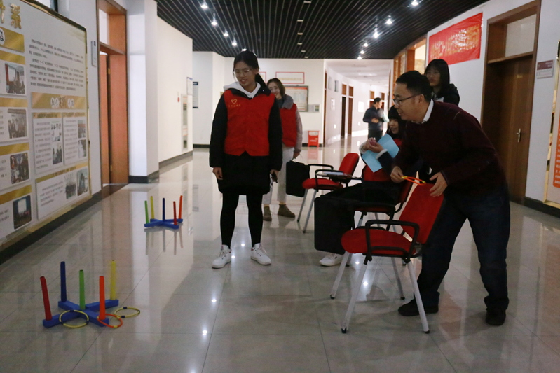 12月18日,财务会计系分工会在图书馆八楼举行了教职工游园会。本次游园活动精心设计了趣味横生的五大项目,海底捞月——需在一分钟内用筷子夹起盛水碗中玻璃珠放至另一个碗中,幸运彩圈——在规定区域向瓶子投圈,小李飞刀——在规定距离内将飞镖投掷飞镖盘,吹乒乓球——在45秒内需将乒乓球依次从第一个圆盘吹到第十个圆盘,蒙眼贴图形——参赛者蒙住双眼笔直走到墙边并将一张吸铁石贴在正确的部分。教职工们积极参与、兴趣盎然,活动现场加油声、欢呼声此起彼伏,连旁观的同学也被老师们的快乐所感染,为老师们加油助威。