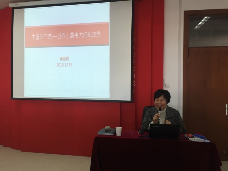 为庆祝改革开放40周年,激励奋进新时代,1218日下午,学校党委委员、副校长蒋丽君为财务会计系全体党员教师上了一堂主题为“中国共产党——世界上最伟大的政党”专题党课。