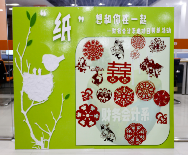 2019年4月22日是第44个“世界地球日”,为了更好地提高同学们热爱地球、保护环境的意识,财务会计系在9号楼2楼开展“纸想和你在一起”世界地球日非遗剪纸活动。此次活动特别邀请了信息技术系动漫设计与制作专业章邵春作为讲解员,手把手传授剪纸技巧。章邵春从中学便开始学习剪纸,获得了浙江省张小泉杯剪纸大赛金奖、全国儿童剪纸大赛二等奖等荣誉。