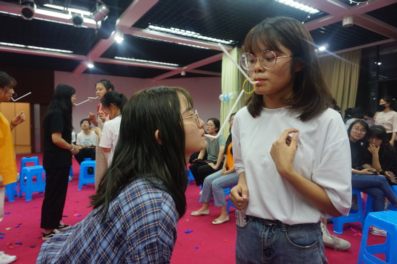 活动在财会系舞队带来的精彩开场舞中开场,随后开始游戏环节,游戏分为两项,“丢掉缺点踩气球”和“快乐传递”。在“丢掉缺点踩气球”游戏中,参与者需将气球吹大,把自己的缺点或者烦恼写在气球上,绑在脚上,然后在规定时间内踩掉写有他人缺点或烦恼的气球;