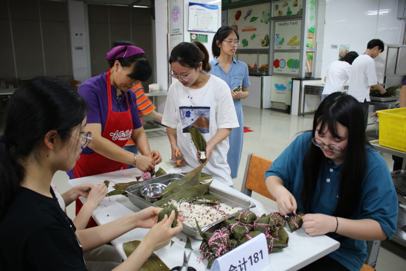 活动开始,食堂阿姨首先进行了专业示范,阿姨双手将粽叶卷成漏斗状,用糯米充实压紧,回折粽叶,然后用红绳绕过粽子绷紧,动作熟练一气呵成,转眼间就裹出一个棱角分明的粽子。经过现场教学后,比赛正式开始,有的同学迅速进入到了状态,娴熟的包粽技术令大家赞不绝口;有的同学则手忙脚乱,绳子还没来得及捆,粽子叶就散了。不一会儿,各种形状的粽子开始成型,浓浓的粽香味弥漫在空气中。最终,会计186、会计188、投理182班获得本次比赛的冠军。活动结束后,大家还品尝到了自己亲手包的粽子,同学们纷纷表示,包粽子的过程太有趣,自己包的粽子很美味。