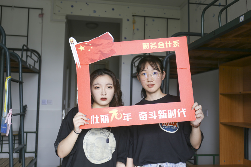 9月15日一大早,全体班主任、辅导员、班助和志愿者们就以饱满的热情在成蹊苑等候大家。今年迎新工作的重点放在了学生寝室,在迎新报到点新生们只要通过扫码就能完成报到,整个过程只需要几秒钟,所有迎新材料都已事先放在了新生宿舍的书桌上。班主任和班助则在寝室不间断走访,答疑解惑,强调注意事项。志愿者们身着统一服装、佩戴着校徽,手举迎新牌,他们负责帮助新生搬运行李,楼里楼外、楼上楼下,满是志愿者忙碌的身影。为营造迎新的氛围,系团总支、学生会还为新生们制作了“壮丽70年·奋斗新时代”、“我爱你中国”、“确认过眼神,我是经贸财会人”“在经贸等我C位出道”等图片供新生拍照留念,小萌新纷纷驻足,在这一天留下了珍贵的照片。