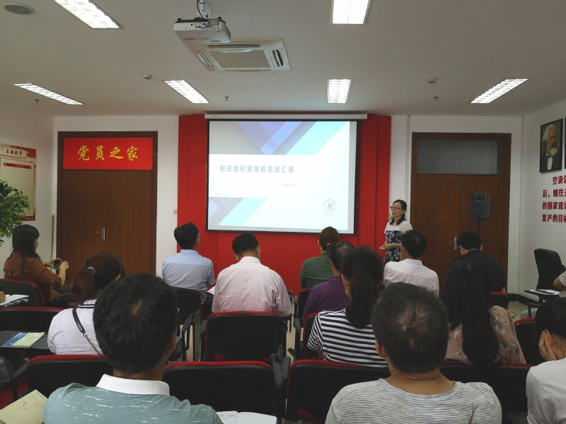 会计、税信、理财三个教师党支部的书记吴燕、郑宝凤、杨钢分别从课程思政目标、推进情况、具体案例和建设经验等方面向大家介绍了本支部涉及专业的课程思政建设情况。介绍过程中,各支部关于思政元素选取、专业知识与思政元素的融合、资源共享机制建设等方面的观点与做法给人耳目一新的启示。