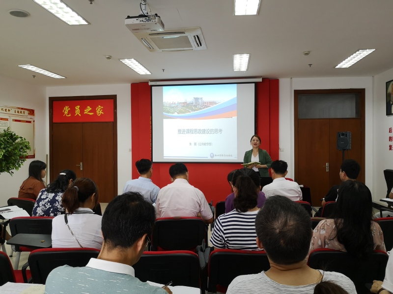 会上,公共教学部主任朱颖做了题为《推进课程思政建设的思考》的辅导报告。纪委书记董伟统对本次活动进行了点评,并谈了自己对构建高校思想政治工作体系和课程思政建设的看法。