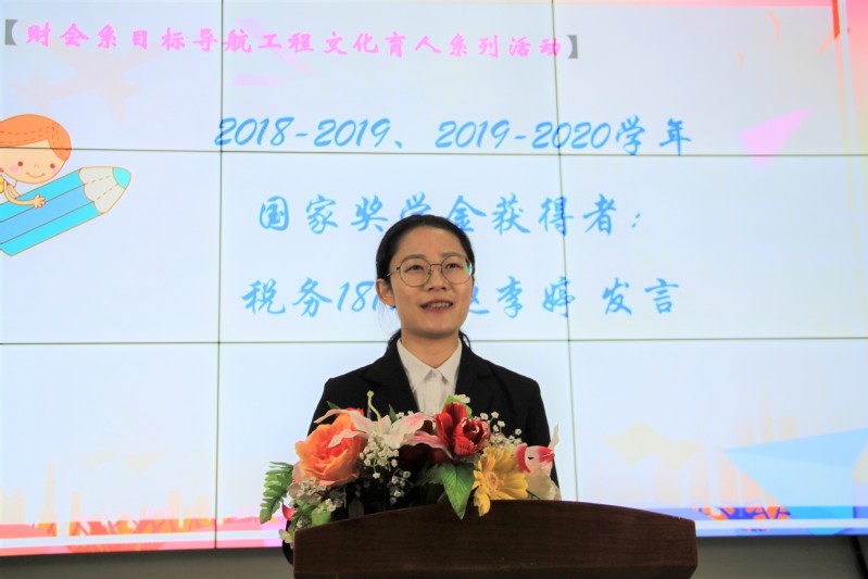 系团总支书记周草作为主持人拉开见面会的帷幕。活动伊始,财会系20级各班的班级宣言便深入人心,各班都喊出了“过级”、“考证”等明确的班级目标。老生代表,连续两年获得国家奖学金的税务181班的赵李婷跟大家分享了她在大学期间的学习、工作经历。投理202班的芦思瑜通过网络票选成为了新生发言的代表,她在发言中向大家讲述了自己的专业初体验和大学奋斗目标。