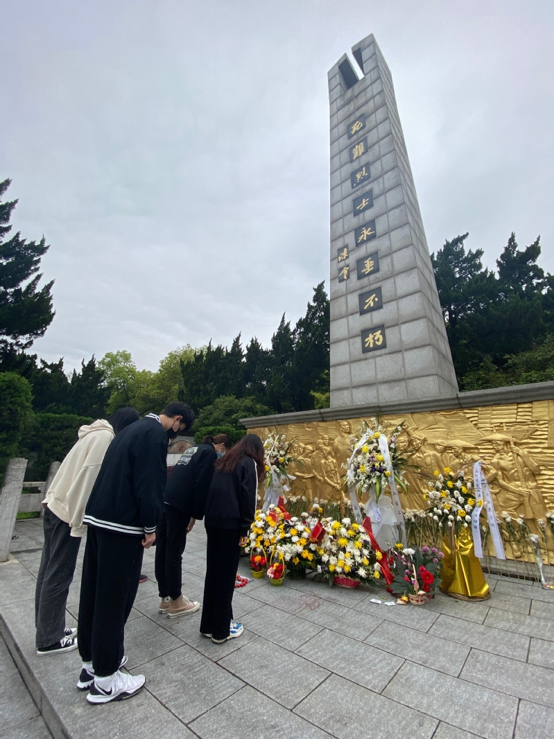 在祭扫仪式中,全体人员瞻仰革命烈士纪念碑,默哀怀念、敬献鲜花,并向纪念碑行鞠躬礼,表达对烈士的崇高敬意和深切悼念之情。仪式完成后,樊玥带领学生深入了解了中国共产党的伟大革命历史和革命先烈的丰功伟绩,引导他们继承先烈遗志,一颗红心跟党走,学党史知党情,铭记中国共产党百年奋斗的光辉历程。
