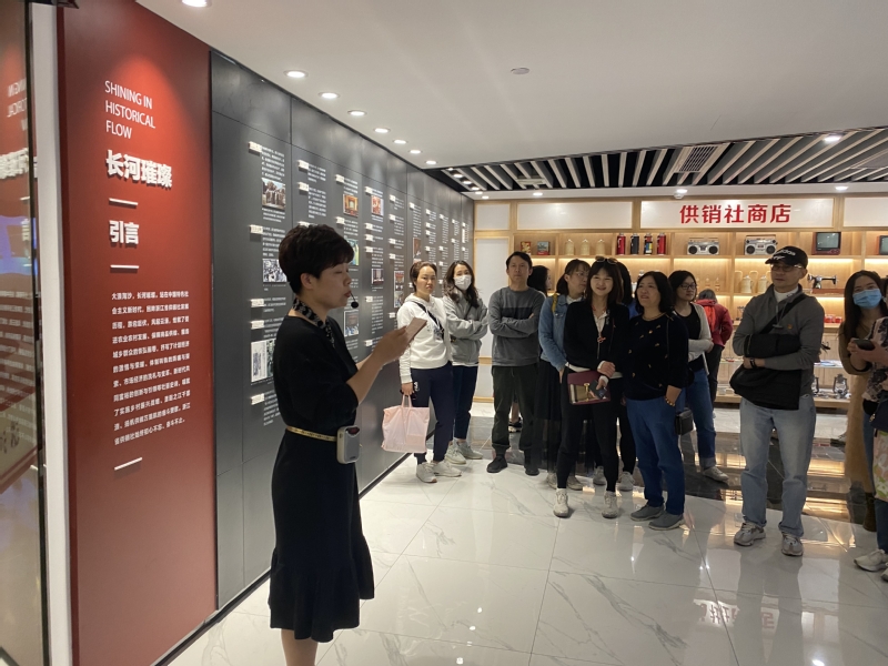 在浙江省供销陈列馆,党员同志们跟随省供销社人事处工作人员的讲解,参观了长河璀璨、激流勇进、守正笃实等三个篇章展厅,回顾了浙江省供销社发展历程,深入领会省供销社在“三位一体”改革中闯出的改革发展与乡村振兴互促共进的新路。展厅一角的供销社商店吸引了大家的目光,其中展陈的缝纫机、热水瓶、收音机等具有强烈时代感的物品勾起了70后、80后几代人的回忆。在“供销社记忆”图片前,党员们边看老照片边讲起各自对供销时代的特殊记忆。