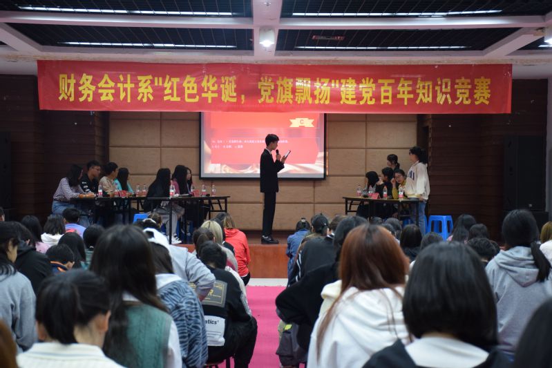 为庆祝建党100周年,进一步激发学生爱党、爱国的热情,坚定共产主义理想信念,财务会计学院开展了一系列党史教育主题活动,4月27日,财务会计学院学习部举办的“红色华诞,党旗飘扬”建党百年知识竞赛在学生活动中心一楼展开。