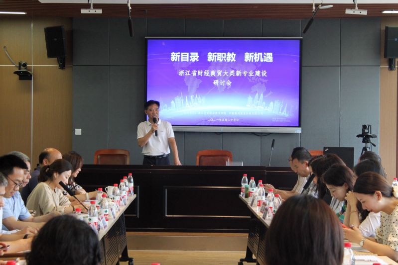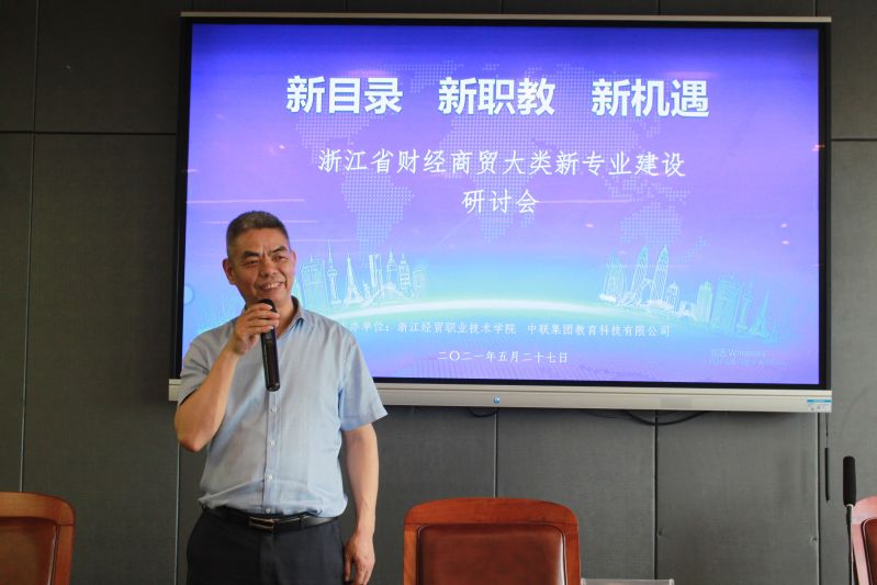 2021年5月27日,由浙江经贸职业技术学院主办的全省财经商贸大类新专业建设研讨会在教师发展中心成功举行。学校副校长何学军、财务会计学院院长潘上永、中联集团教育公司副总裁冯学平出席会议,来自全省28所中高职院校二级学院院长和专业带头人60余人参加了此次会议。会议由财务会计学院院长潘上永主持。