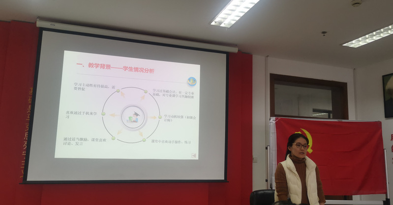 11月16日下午,财务会计学院为进一步贯彻落实“三教”改革精神,推动教学改革建设向纵深发展,切实提高教师的专业素养和教学能力,充分发挥优秀教师的引领和示范作用,组织了一场教学公开课。杨依依老师结合学校示范课建设,周肖肖、郑洋慧、杨璠老师结合学校优质课建设,展示了他们的教学设计和教学创新的过程和成果。周肖肖老师讲授了《税法基础》课程,以三个心、三能力、三意识为主线,以注册登记虚拟企业为载体,实施了“任务引领、理实一体”的教学方法。郑洋慧老师讲授了在《会计基础》课程中根据动觉型学习者的特点,运用“6A”认知教学法的过程和方法。杨璠老师讲授了《成本管理会计》课程中“教、学、做、思”一体化教学设计思路和微翻课堂、任务驱动的教学方法。杨依依老师讲授了在《证券投资实务》课程中基于“知、行、情、意”学情分析,运用学习空间等手段的课程教学过程和方法。