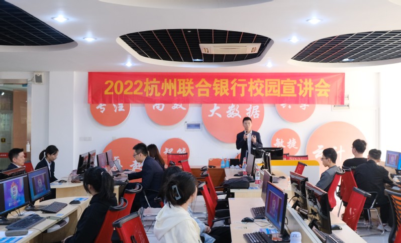 为帮助学生解决就业难题,加大学院就业政策的宣传力度,实现高校与企业的良性互动。10月18日晚,杭州联合银行在9号楼201教室举办订单班宣讲会,暨我校与杭州联合银行开展的第二届学徒制订单班启动仪式,银行相关负责人出席活动,学院专任教师陈颖瑛主持活动。