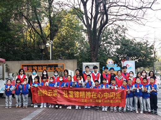 在第60个学雷锋纪念日到来之际,浙江经贸职业技术学院财务会计学院的大学生志愿者们来到杭州白杨街道云滨社区,携手文清小学的小朋友一起讲雷锋故事、做雷锋书签、学雷锋精神。