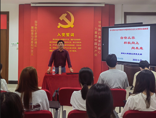 在全校上下深入开展学习贯彻习近平新时代中国特色社会主义思想主题教育的重要时刻,5月30日,财税大数据应用党支部在毕业生返校期间,为毕业生党员讲授专题党课。党课由支部书记郑宝凤主持,教授方飞虎主讲,支部党员和毕业生党员30余人参加。