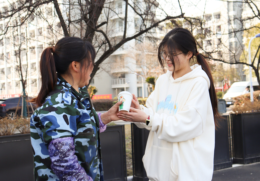 “叔叔,您辛苦了!这个手绘杯子送给您!”3月3日,学院大数据与会计235班管育杭将精心绘制的“雷锋杯”送给了正在执勤的保安叔叔。
