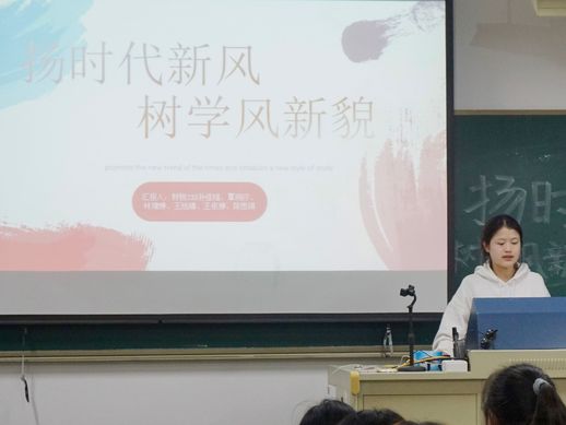 为促进学生全面发展,提升学生文明素养,树立优良学风班风,3月17日,学院在晚自习期间组织各班开展了以“扬时代新风,树学风新貌”为主题的特色晚自习,全体大一同学参加。