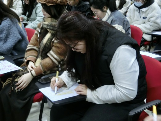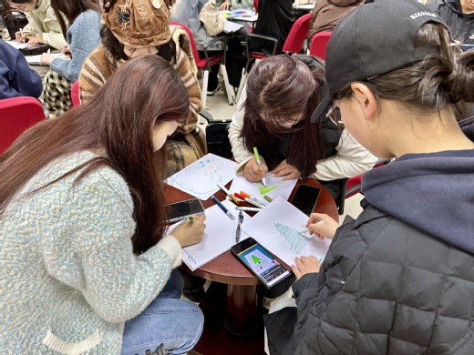 活动伊始,主持人引导同学们进行“房树人心理测验”,大家将房子、树、人画在一张白纸上,每个人画的房、树、人形态都不同,主持人为大家分析了房、树、人在不同位置、不同画风中所代表的不同含义,让大家更好地了解自己的内心。主持人还列举了两个心理测验案例来解释心理健康的重要性,帮助同学们缓解学习生活压力,大家纷纷表示收获良多。随后,主持人组织大家进行了“绘绿意,筑未来”绘画活动,大家分组绘画,将盈盈绿意付诸笔端,把压力从画中释放。