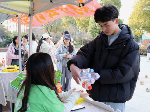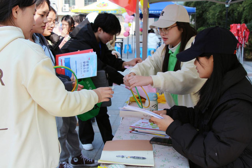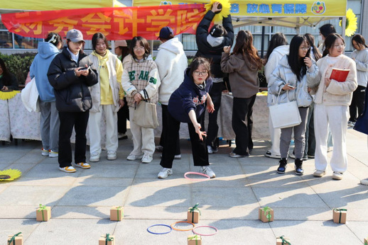 近日,一个转发推文集套圈的活动刷爆了学院学生的朋友圈。原来,学生只需在社交媒体上转发“青春‘绿’动,爱意集‘盒’”活动推文并编辑植树节标语集齐点赞,或者回收一定数量的旧物、收集空水瓶即可兑换套圈参加游戏,赢取种子盲盒,在春日播撒一片绿意。回收的废旧物将换成衣服和书籍捐赠给贫困山区儿童。当天,活动现场参与人数众多,两个小时累计送出种子盲盒300余个。
