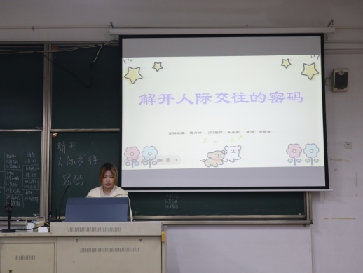 为提高学生人际交往能力,促进身心健康发展,4月28日,学院在晚自习期间组织大一各班开展了以“解开人际交往的密码”为主题的特色晚自习。