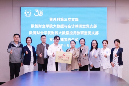为深入贯彻新时代党的建设总要求,积极探索党建工作在新形势下的融合发展新模式,更好地推动基层党组织高质量发展建设,提升党建工作整体水平。11月8日下午,数智财金学院赴浙江大学医学院附属邵逸夫医院(以下简称“邵逸夫医院”),开展党建共建活动。邵逸夫医院普外科第三党支部副书记严加费及支部委员;学院党总支副书记隋伟燕、副院长吴晓霞、支部书记及相关教师参加了活动。
