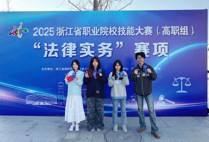 3月21日-23日,由浙江省教育厅主办的2025年浙江省职业院校技能大赛高职组“法律实务”赛项在浙江工贸职业技术学院举行。全省14所院校,28支队伍,107名选手同台竞技。由数智财金学院周肖肖、莫佳妮、余子涵团队指导,袁佳语、彭菁菁、陈思羽、王逸凡组成的参赛队伍,经过激烈角逐,荣获银奖。