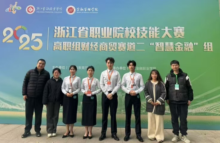3月30日-4月1日,由浙江省教育厅主办的2025年浙江省职业院校技能大赛高职组“智慧金融”赛项,在浙江金融职业学院圆满落幕。全省20所高职院校,36支代表队,共计144名选手参赛。由数智财金学院金莎莎、胡璐、孙斌、宋悦团队指导,潘宇笛、顾荣泽、嵇思彤、曾嘉、韩昊霖、杨彦笑、张凯、房夕组成的两支参赛队伍,经过激烈角逐,荣获铜奖两项。