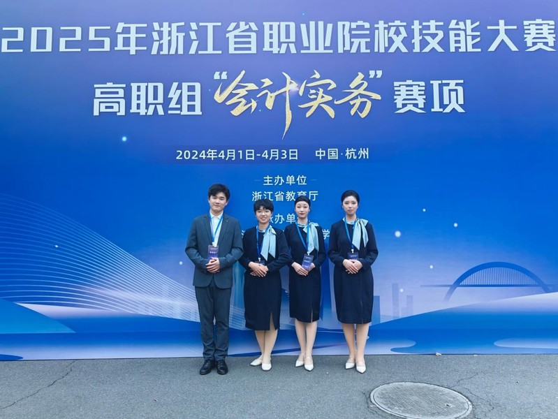 4月1日-3日,由浙江省教育厅主办的2025年浙江省职业院校技能大赛高职组“会计实务”赛项在我校圆满落幕。全省30所院校,119名选手同台竞技。由数智财金学院刘学思、郑洋慧、乔凯丽团队指导,谷依依、林芷萱、郑瑞阳、周娇组成的参赛队伍,经过激烈角逐,荣获金奖第一名。