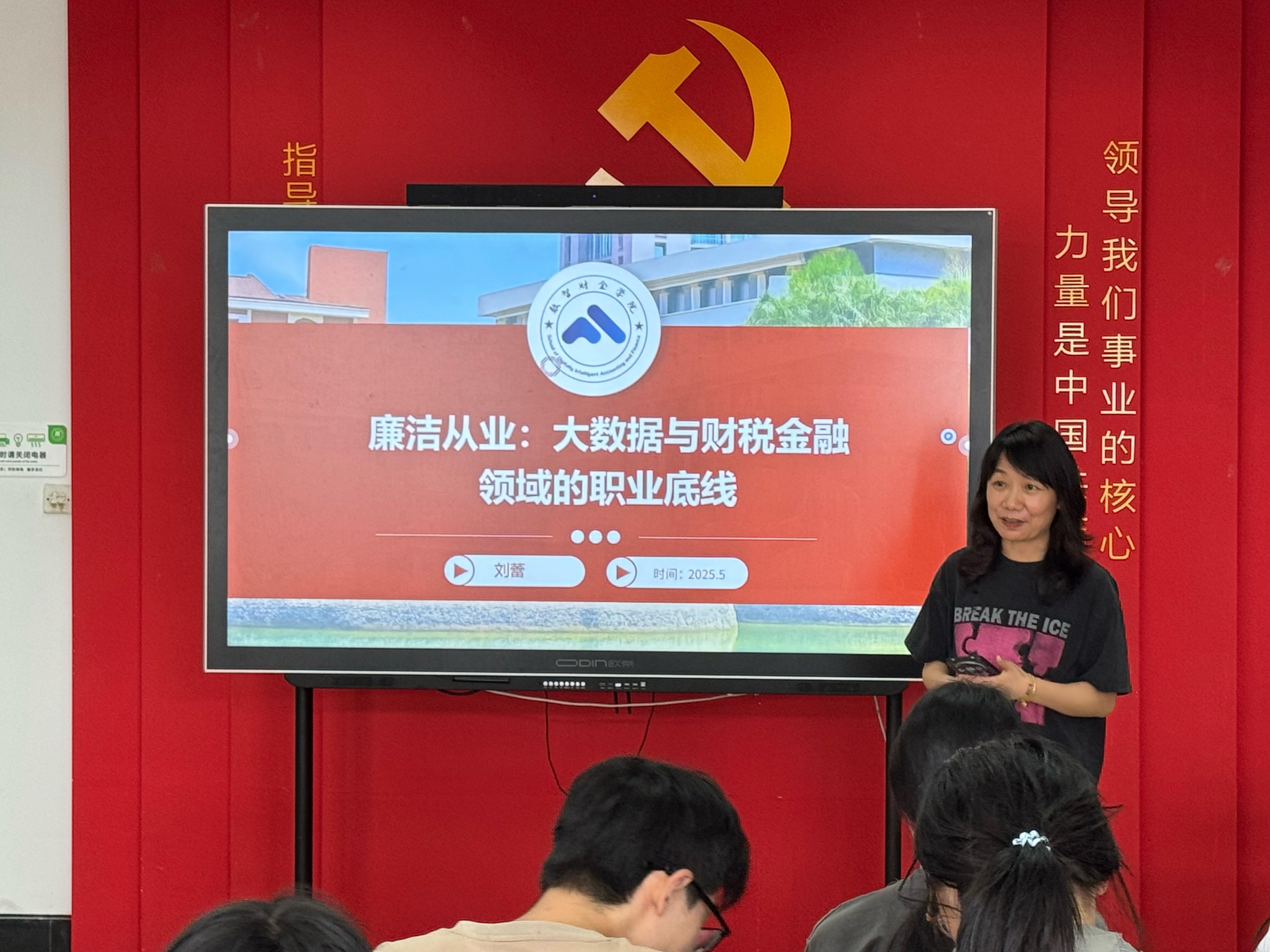 为切实提高毕业生廉洁从业的风险意识,引导毕业生树立严格遵守法律法规和职业道德规范的就业观念,学院于5月26日下午四点在党员之家举办“廉洁从业:大数据与财税金融邻域的职业底线”讲座活动,学院副院长刘蕾担任主讲人,部分2025届毕业生参加。